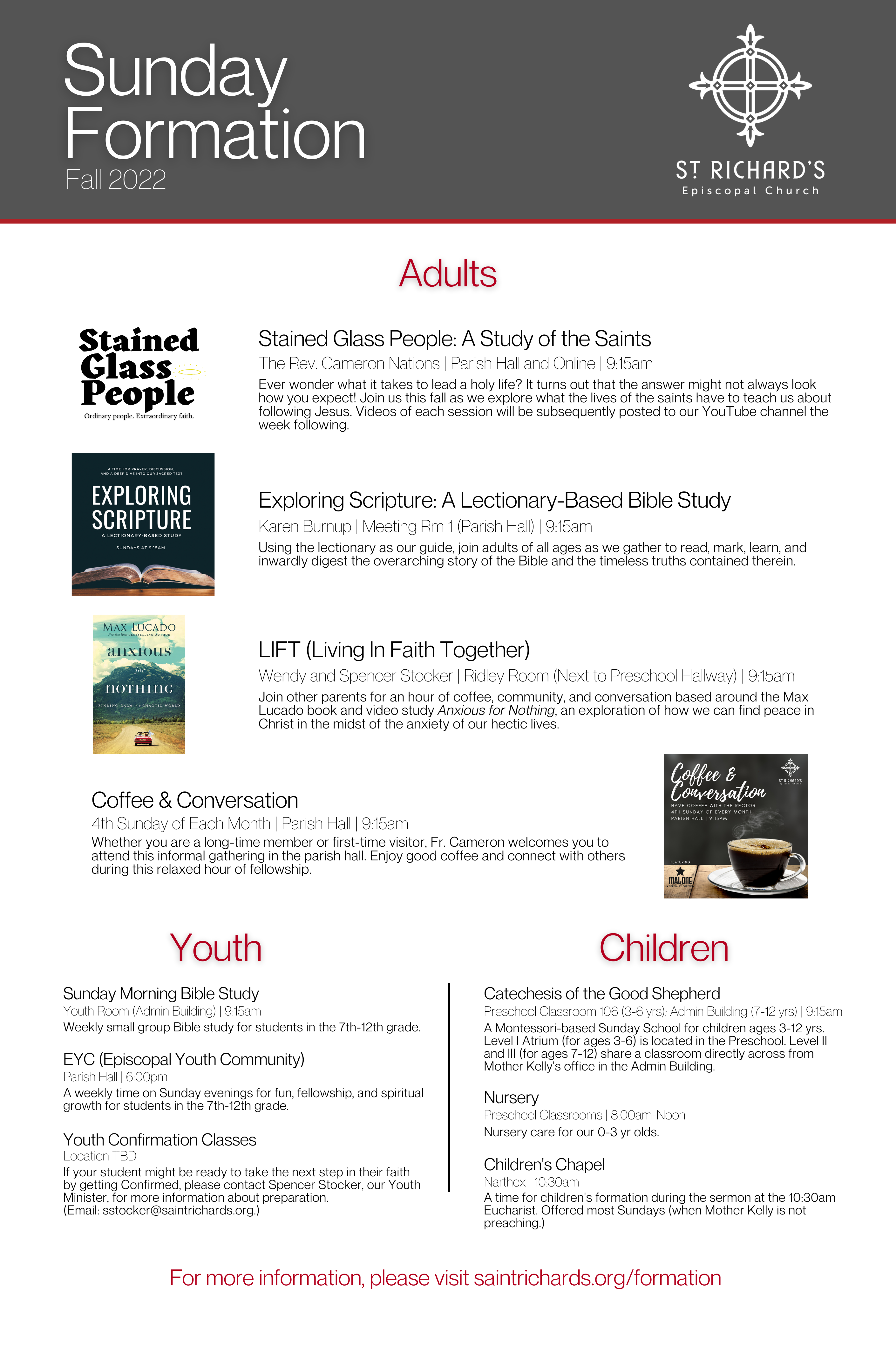 Below are various images from teaching series that I have offered at St. Richard’s, Round Rock.