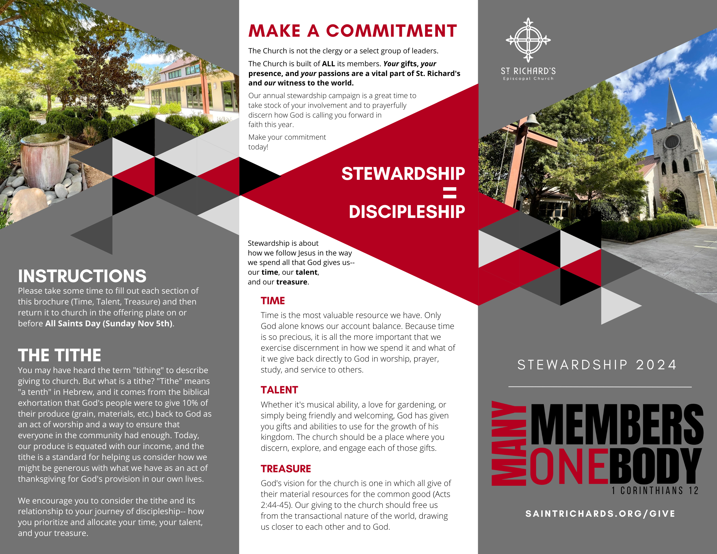 Below are examples of other stewardship themes that I have designed for use at St. Richard’s, Round Rock.